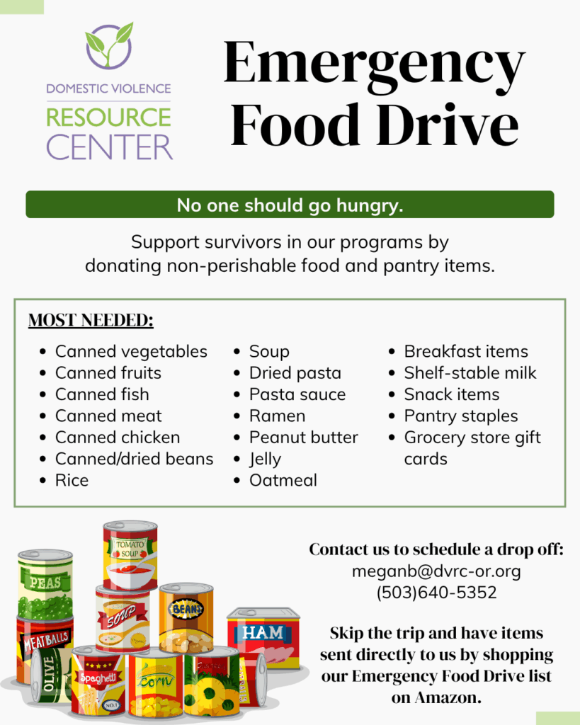 ✅ Drop off non-perishable food to our center. Contact us to schedule a drop off at [email protected] or (503)640-5352.